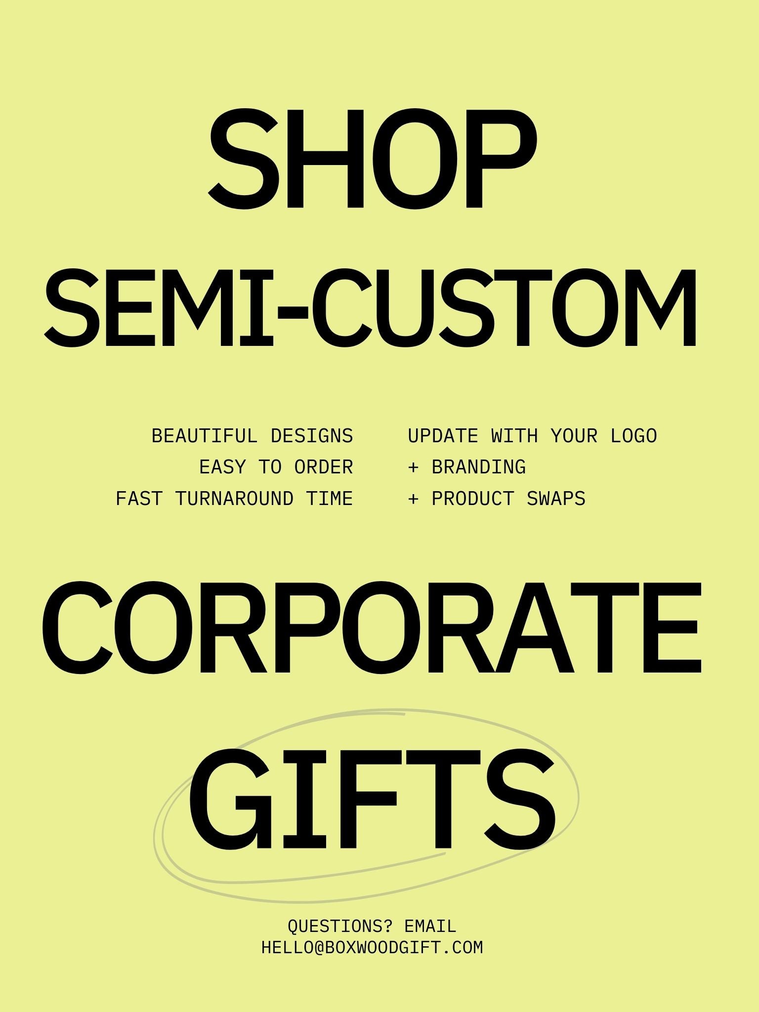 Take your gifting to the next level with our fully custom and branded solutions! Whether you're celebrating milestones, hosting events, or creating a lasting impression with clients and employees, we specialize in designing bespoke gifts tailored to your brand and vision.